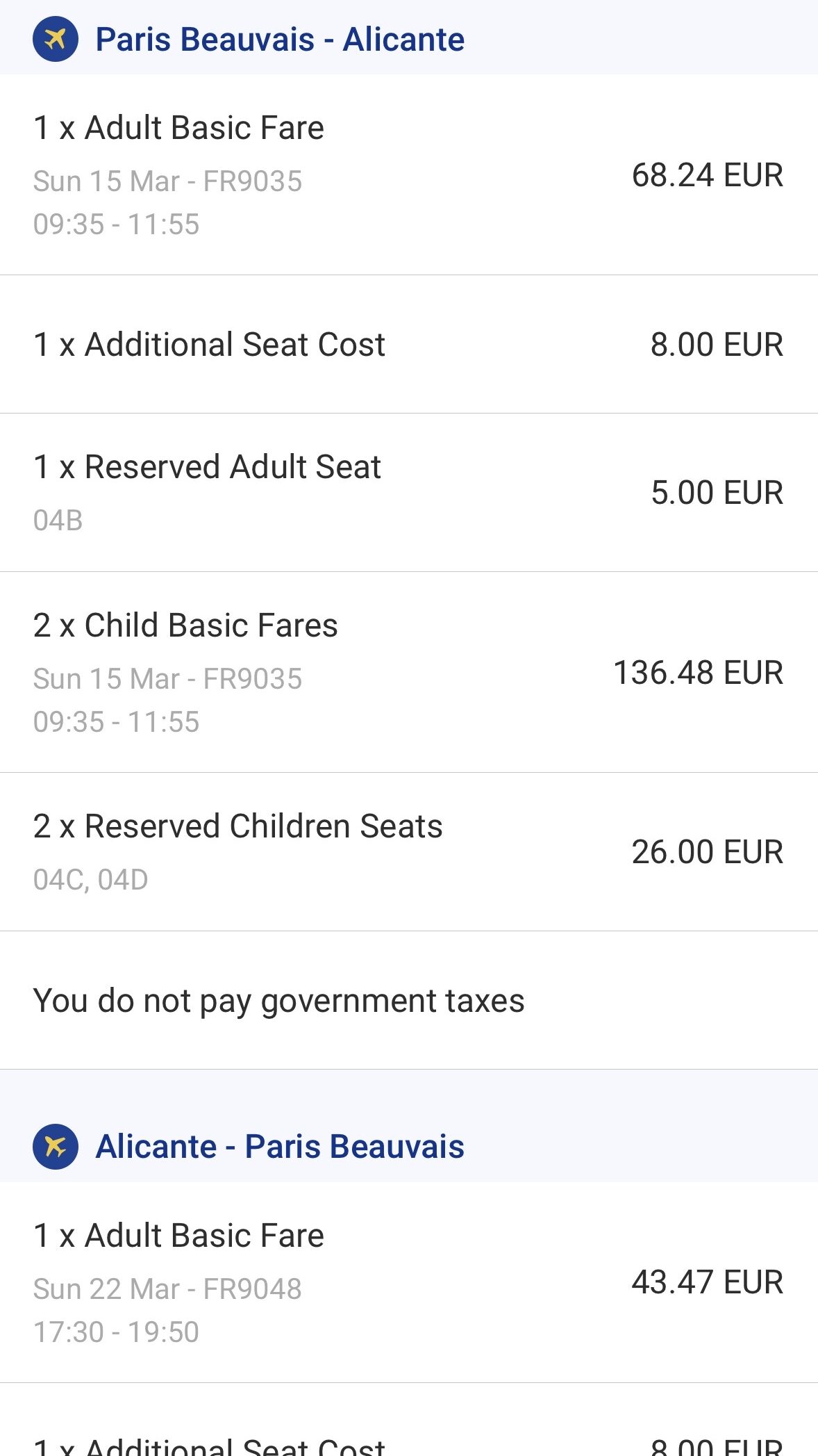 - Zaplatíte pevný poplatek 8 EUR za dospělé sedadlo